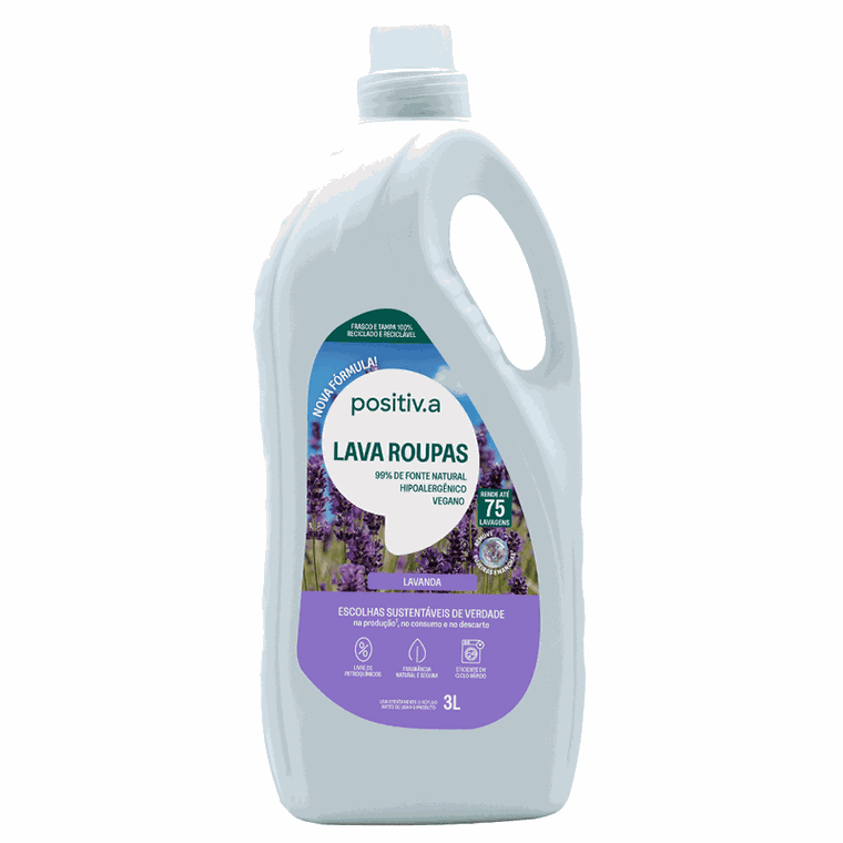 Troque seu Lava roupas convencional pelo Sabão Líquido Lavanda 1L, da POSITIVA e livre a sua casa e a sua saúde de derivados de petróleo, corantes e fragrância.